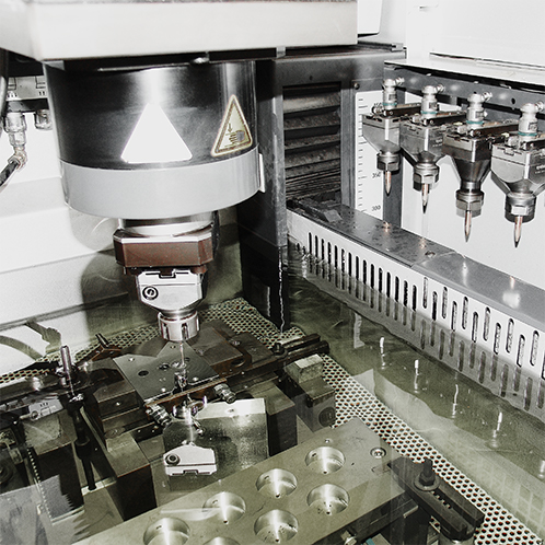Dort, wo die mechanische Bearbeitung schwer zerspanbarer Werkstoffe an ihre Grenzen stößt, beginnt das Einsatzgebiet des Funkenerodierens. Komplexe Formen und Koniken mit feinsten Oberflächen können so in allen leitfähigen Materialien – auch in gehärtetem Stahl, Titan oder Hartmetall – hergestellt werden. Wir verfügen aufgrund jahrzehntelanger Erfahrung über ein umfangreiches Fachwissen rund um die Erodiertechnik in den verschiedensten Branchen und wenden an insgesamt 18 Maschinen zwei Techniken an: Drahterodieren & Senkerodieren.